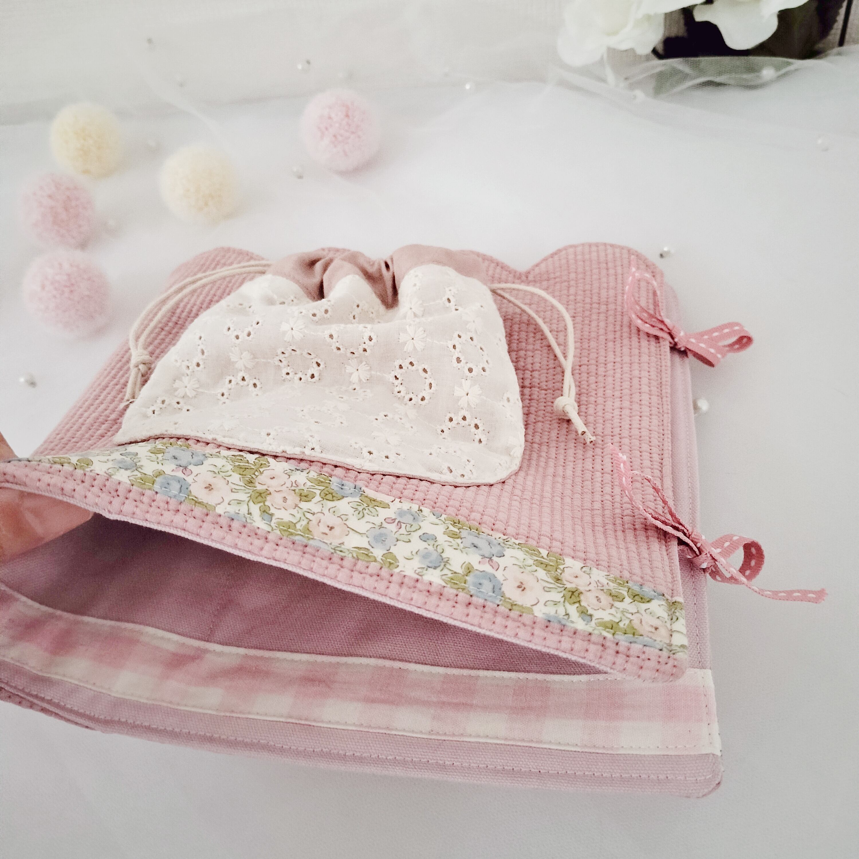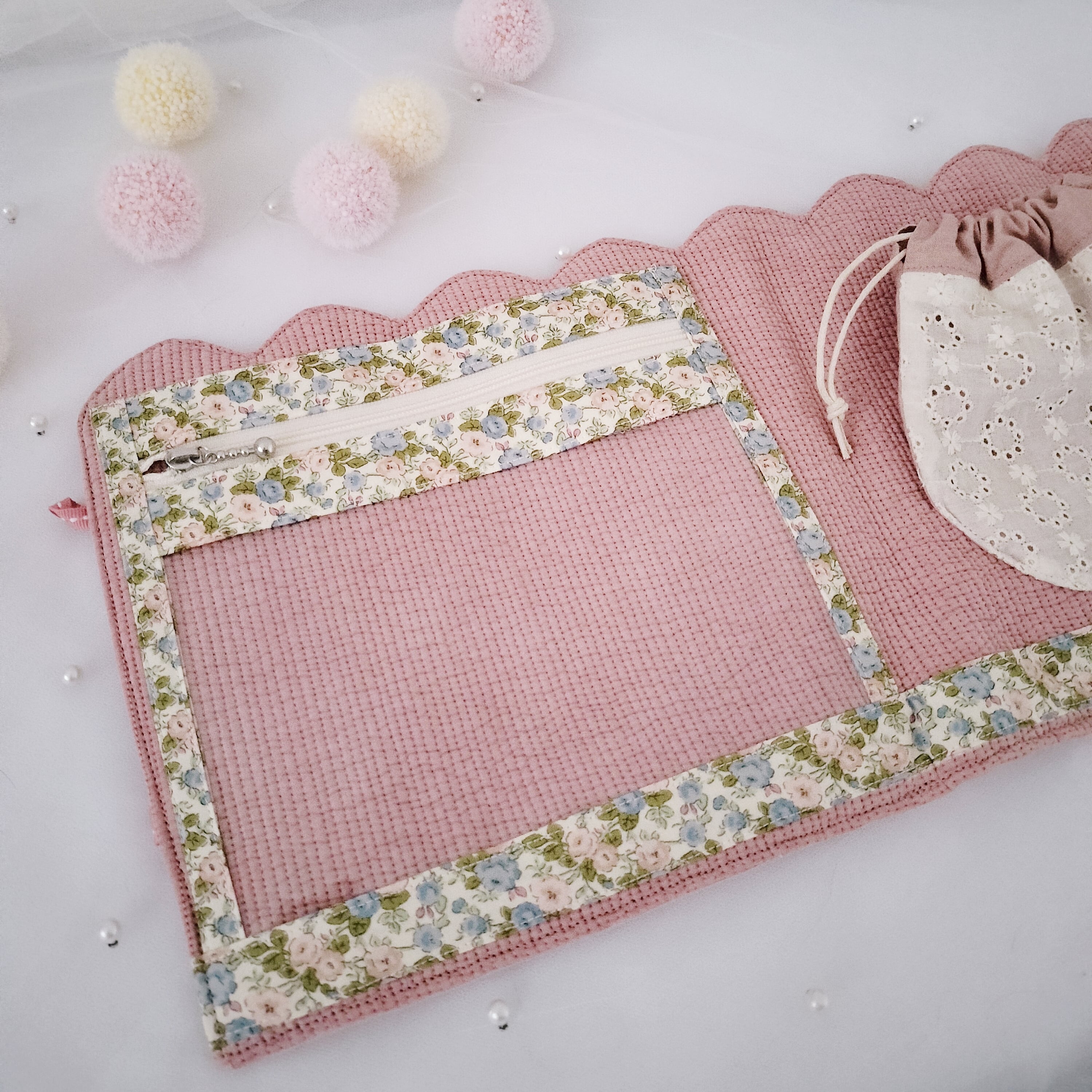 大人の移動ポケット バッグに入れて便利! くすみピンク&お花畑