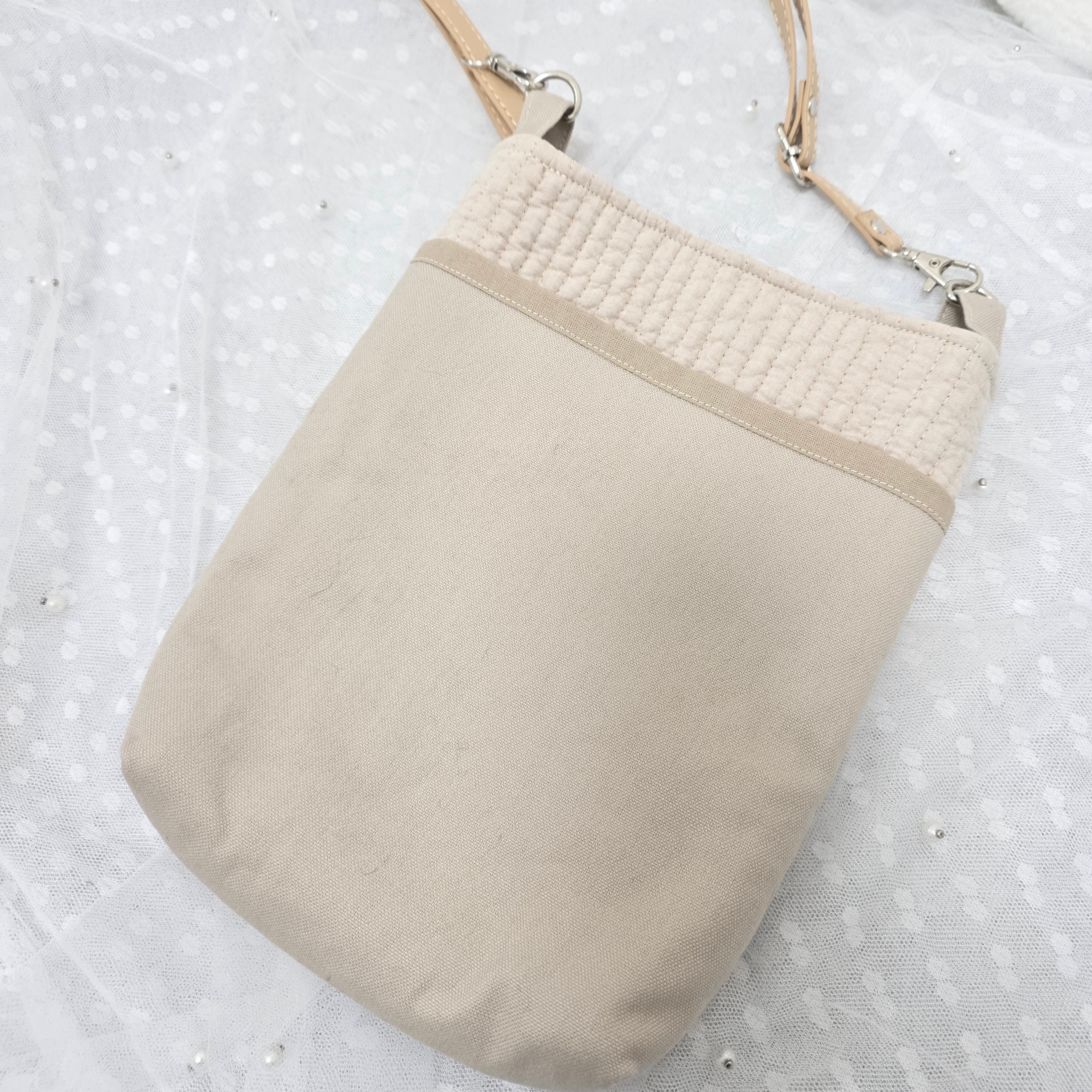 ヌビとインド刺繍リボンのサコッシュ ライトベージュ
