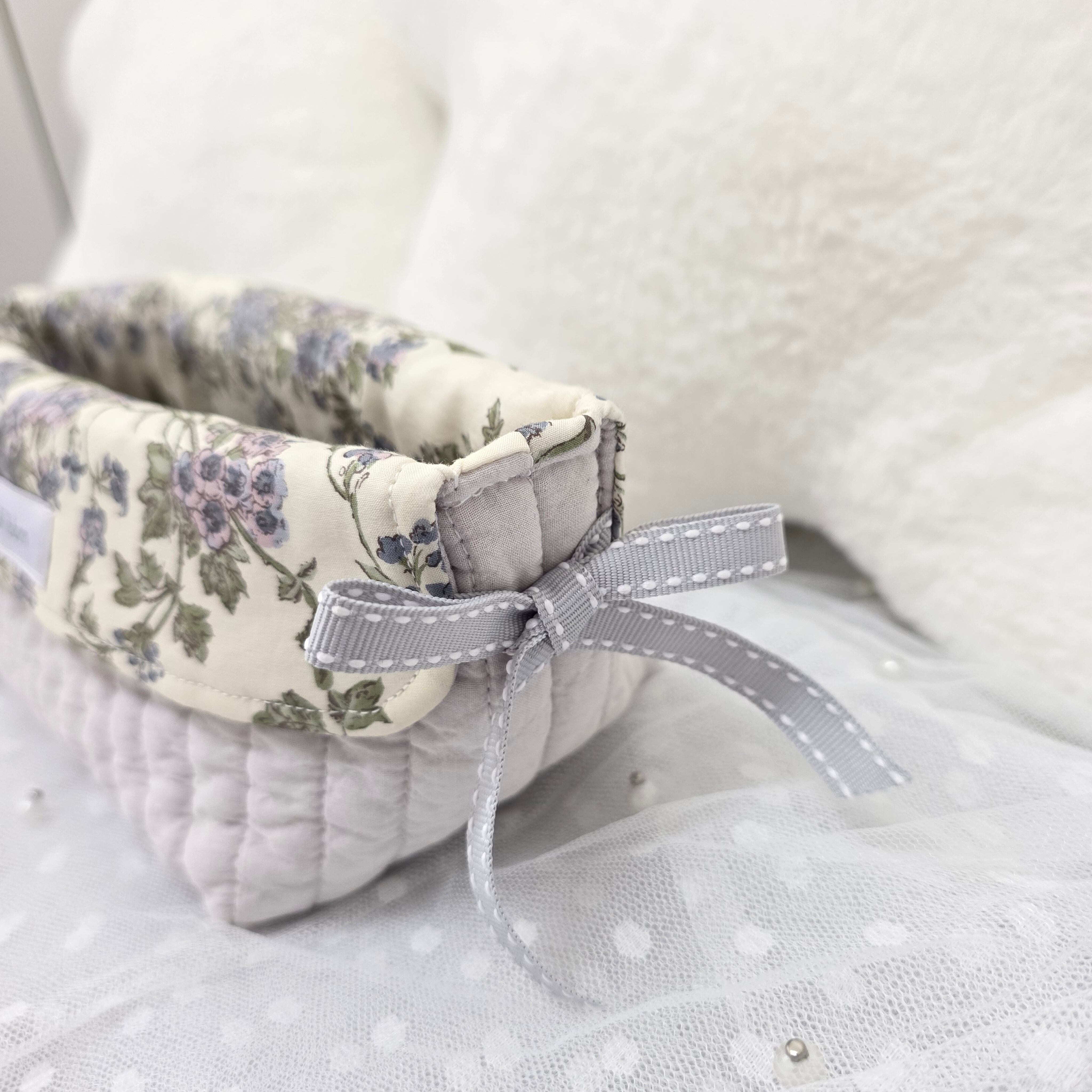 ヌビとリバティの布バスケット アイスグレー ライラックのフラワー