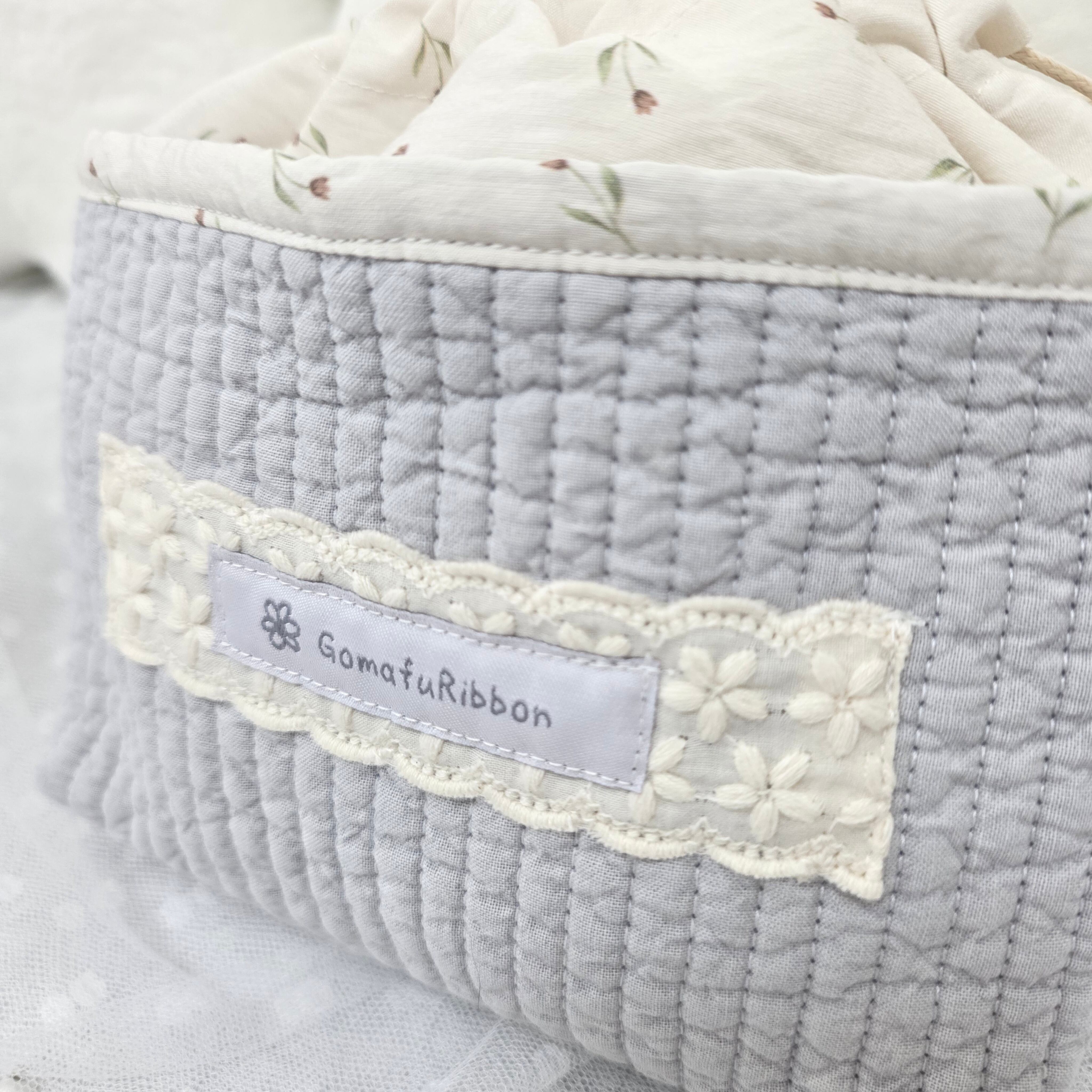 巾着付きヌビポーチ アイスグレー チューリップ柄