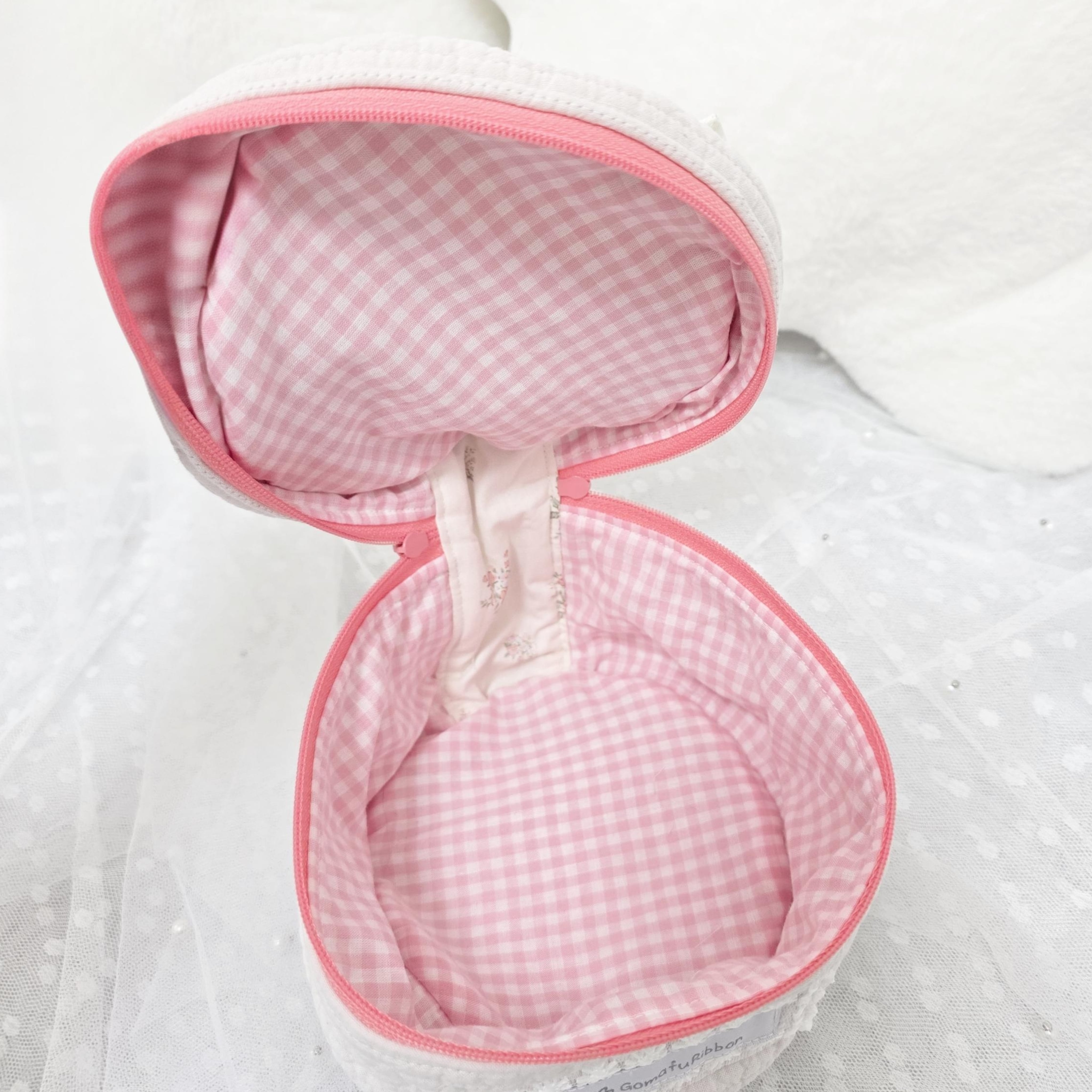 ふわふわリボンのまあるいバニティポーチ アイボリー