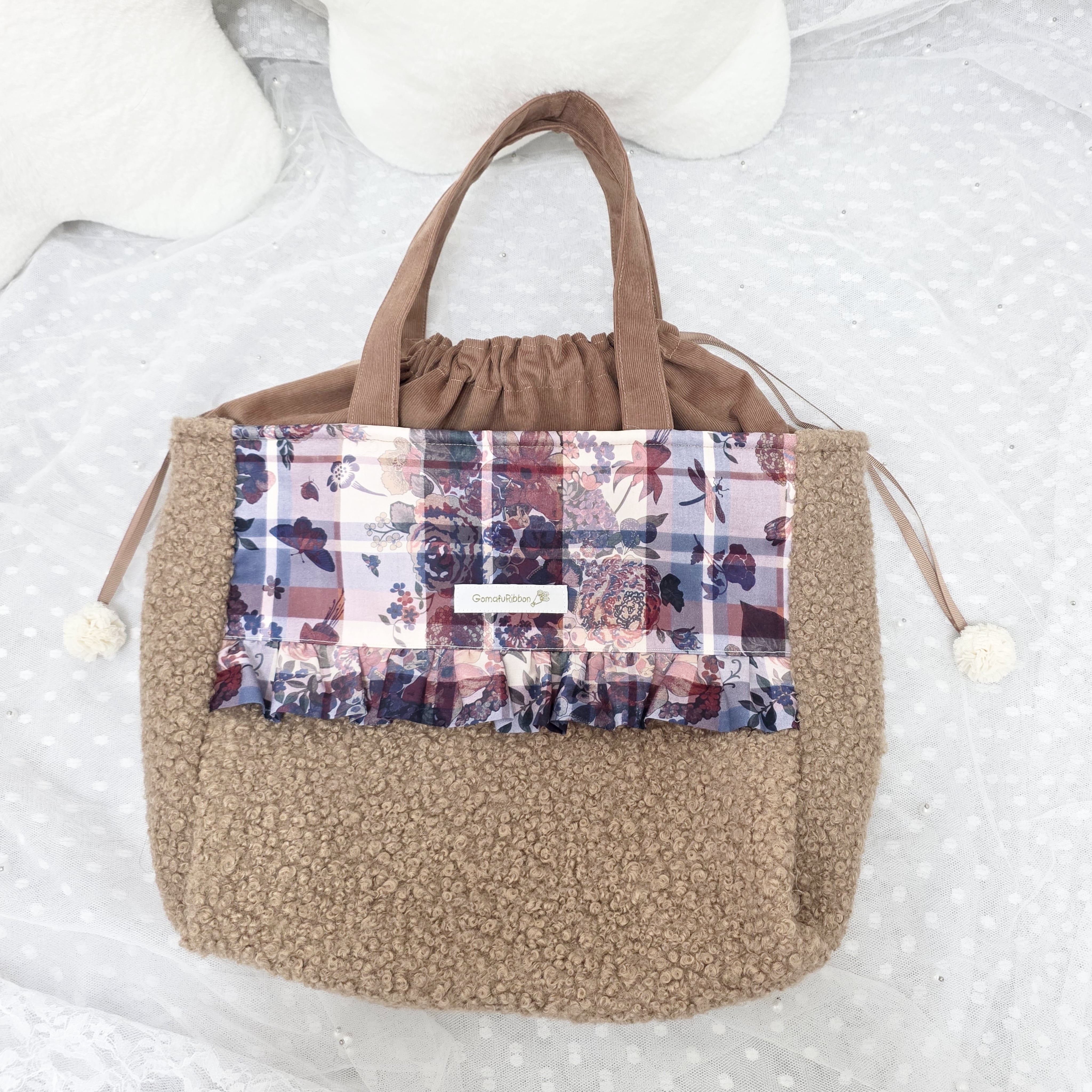 このトートバッグは、秋冬にぴったりのテディボア素材を使用しています。