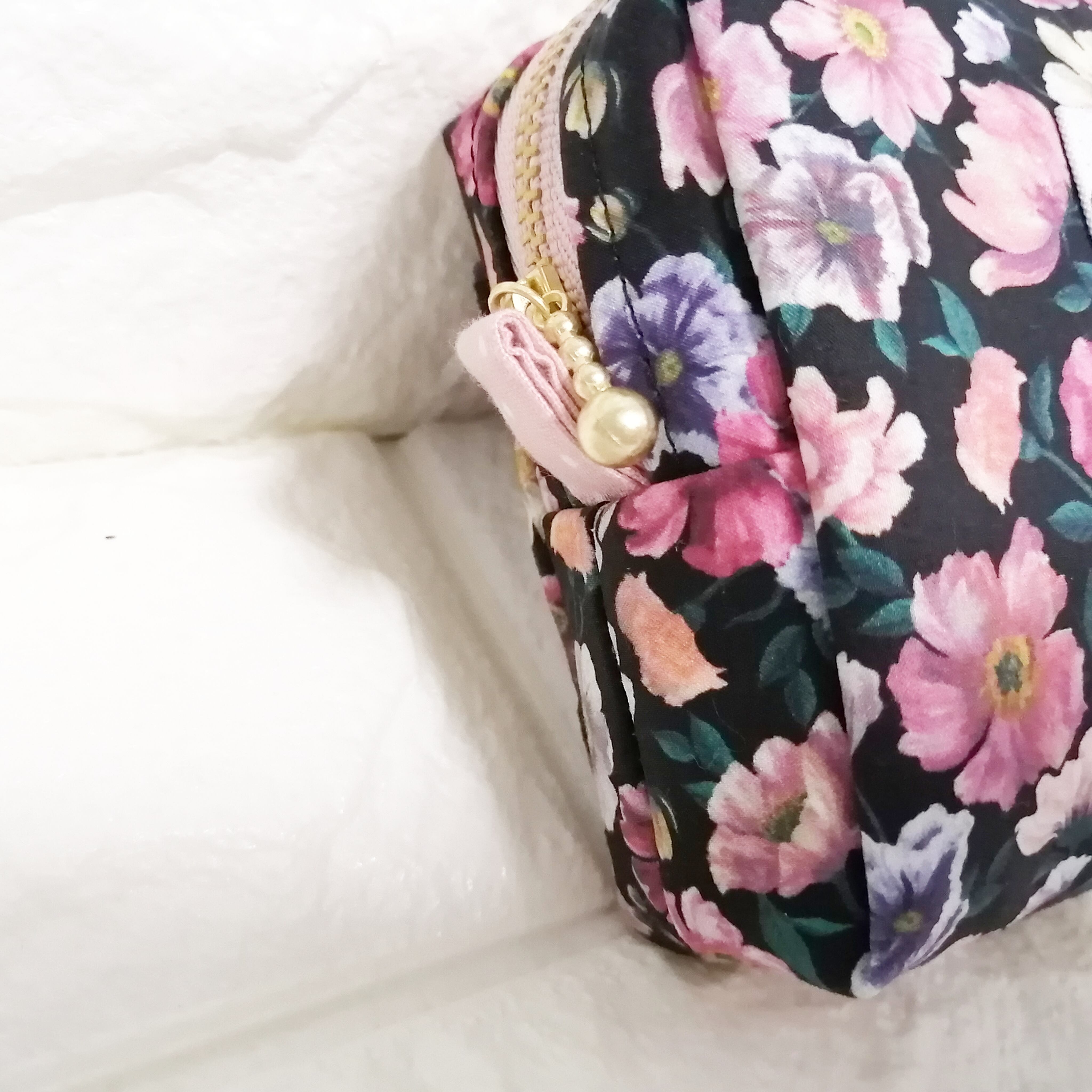 リバティ生地(コスモス)のミニボックスポーチです。