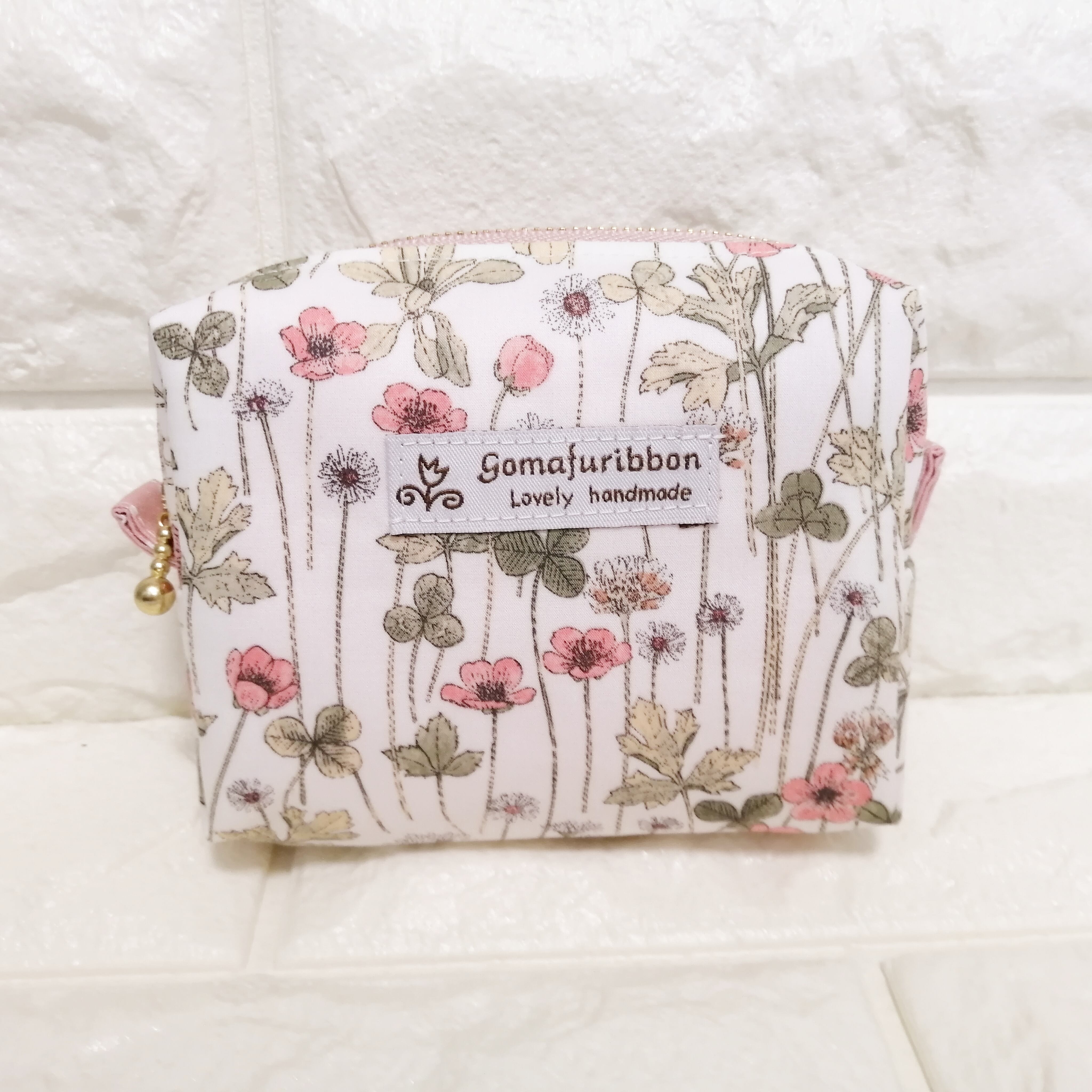 ミニボックスポーチ リバティ ジョセフィンズガーデン 白xピンクの花