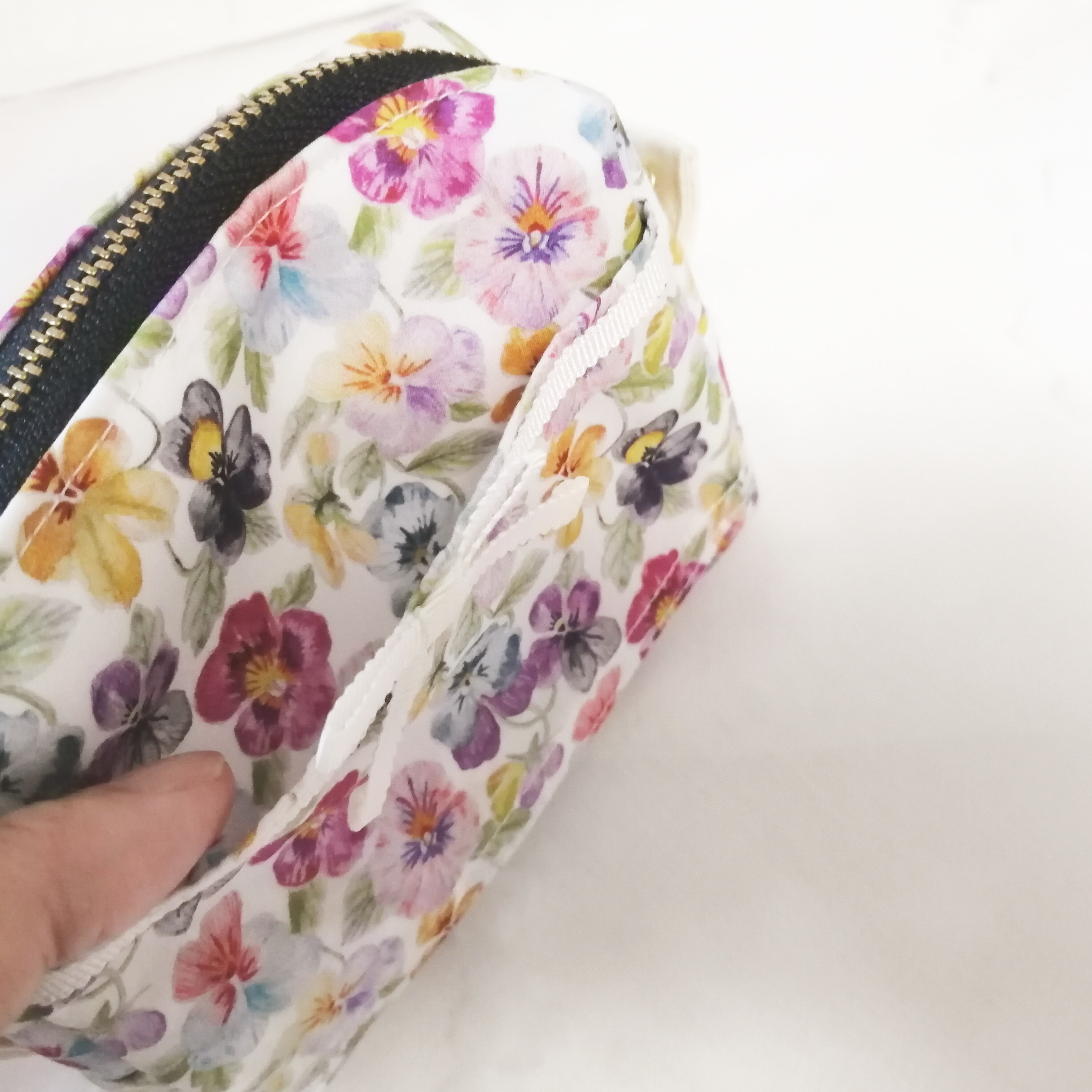 リバティ生地(シンクオブミー)のミニボックスポーチです。