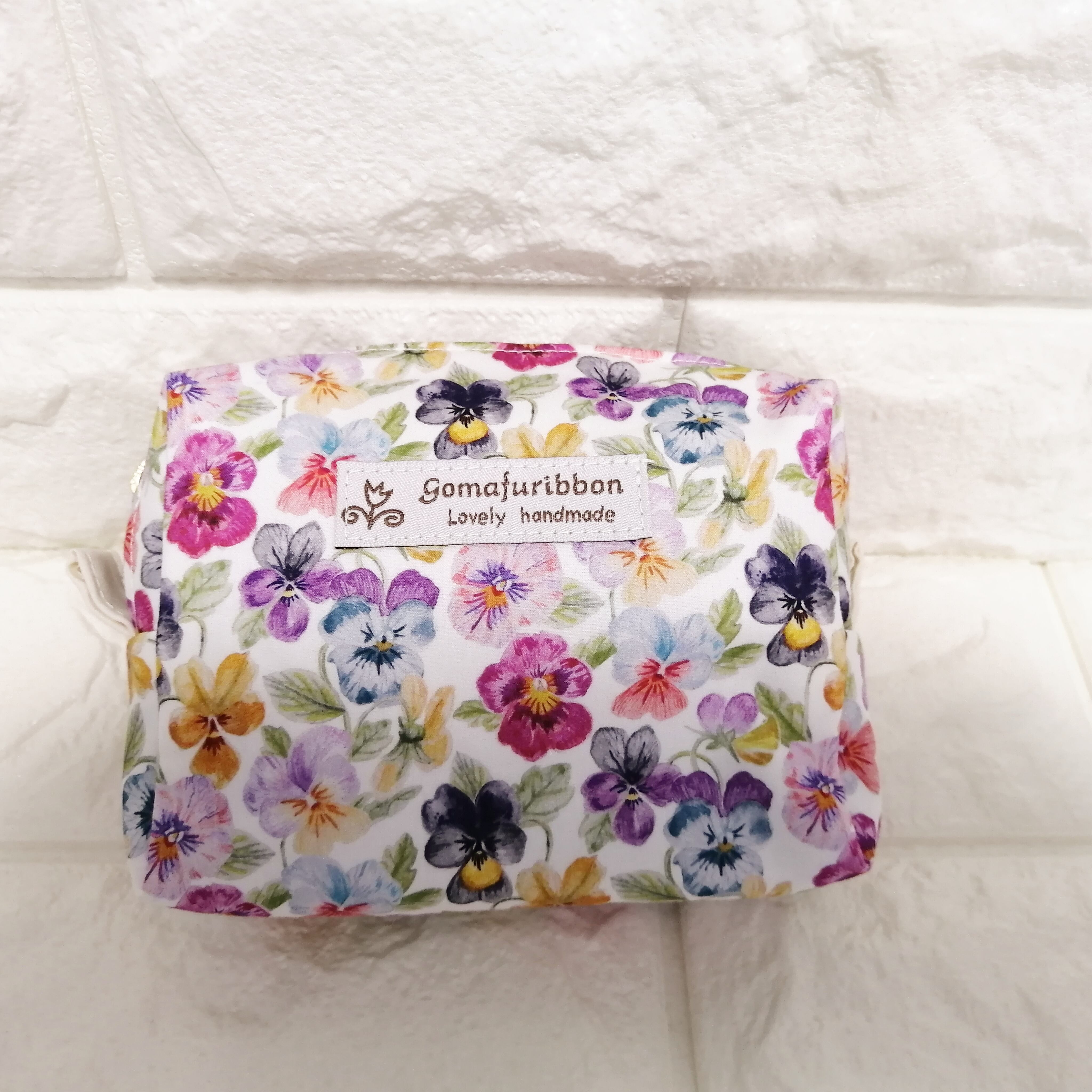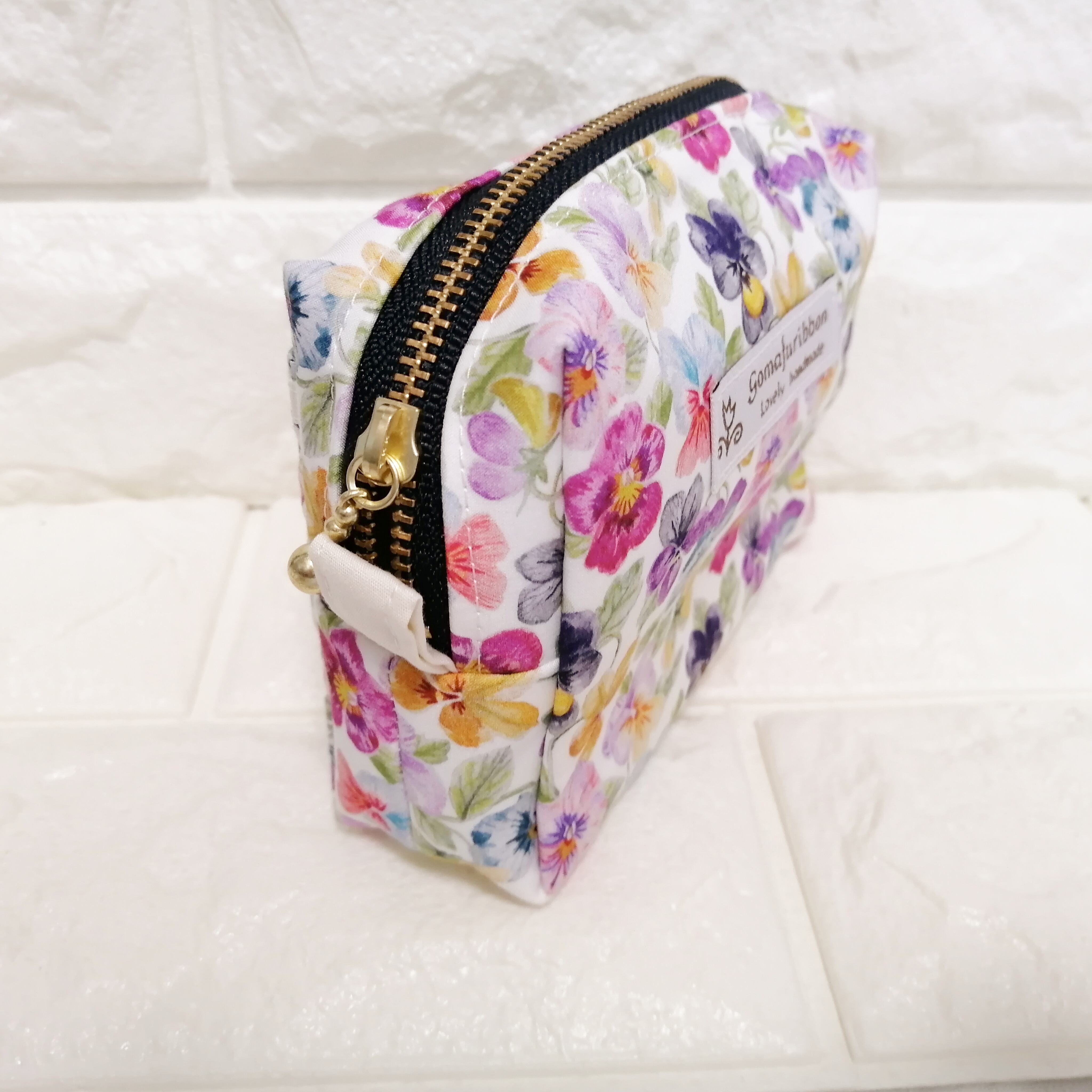 ミニボックスポーチ リバティ シンクオブミー 白xパープルの花