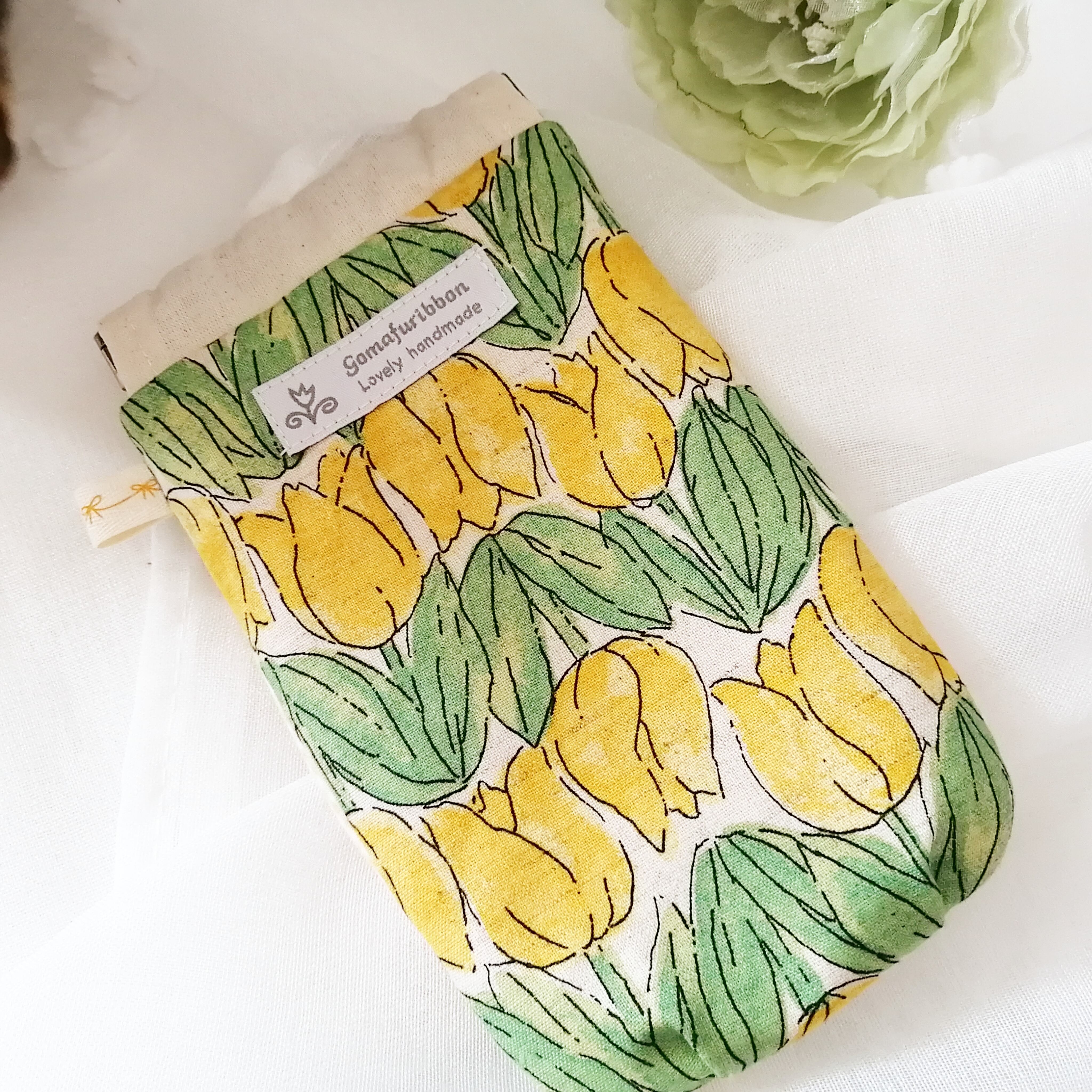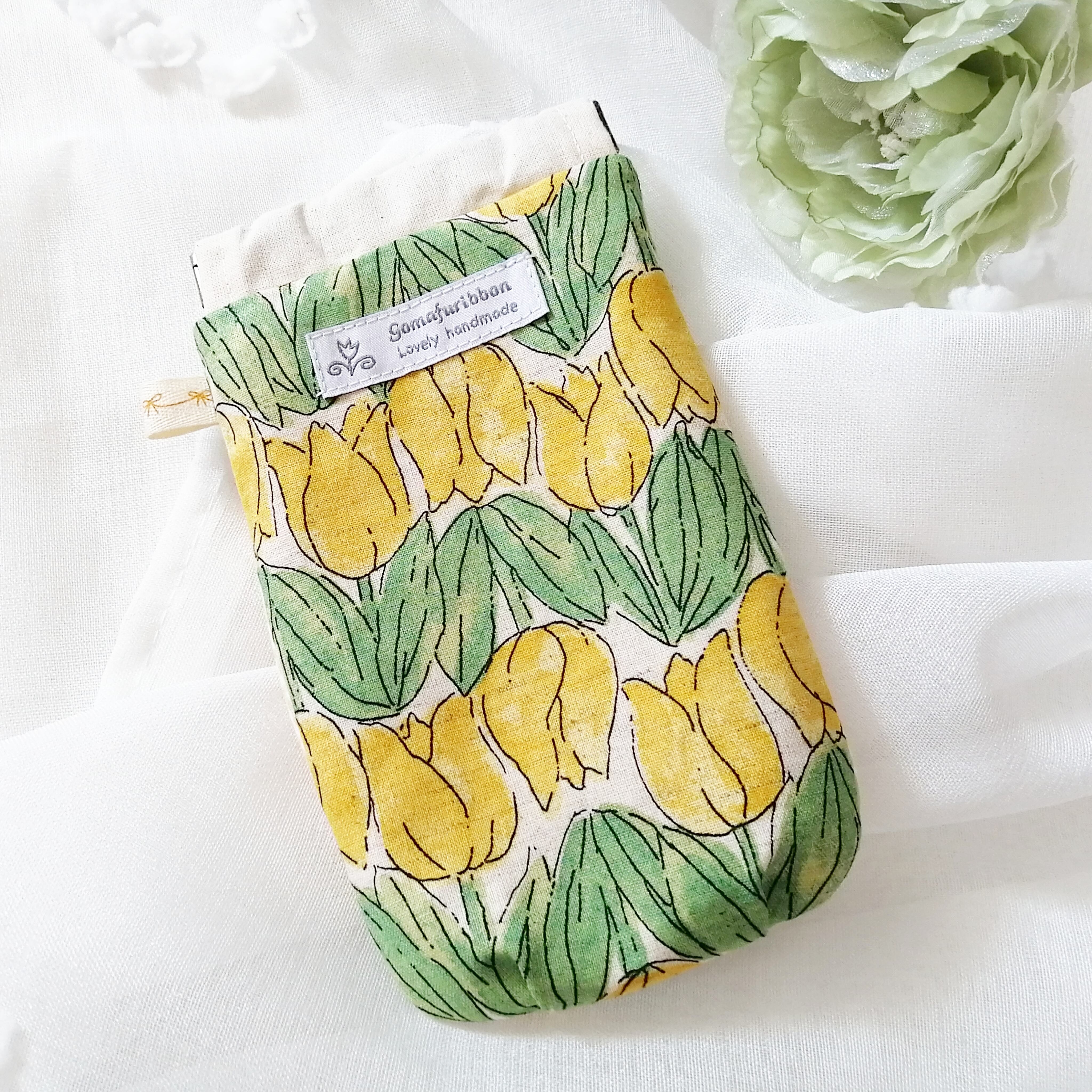 メガネケース バネ口 チューリップ ギンガムチェックのリボン