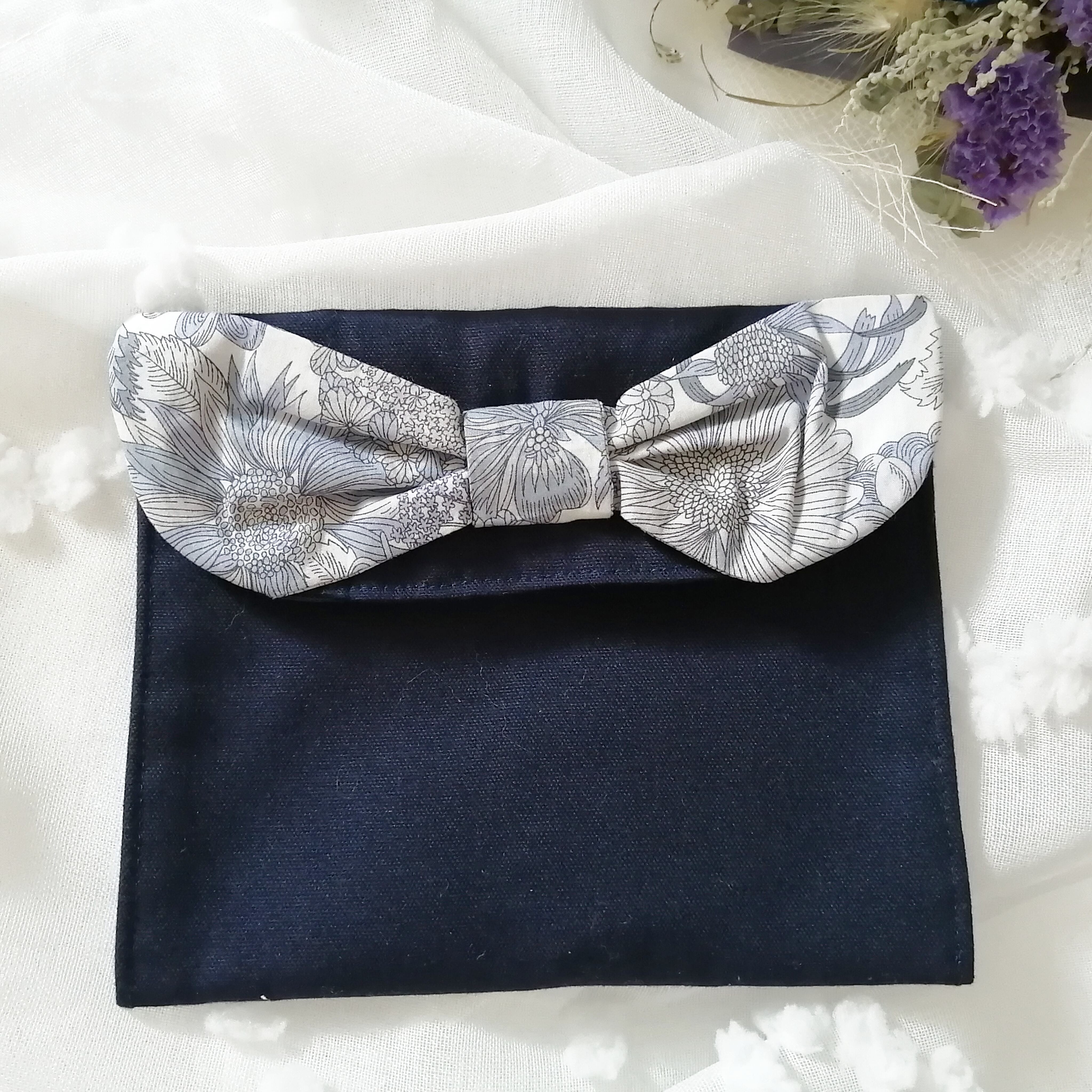 大人可愛さを上品に演出してくれるリバティ生地でリボンをつけた、ぺたんこポーチです。