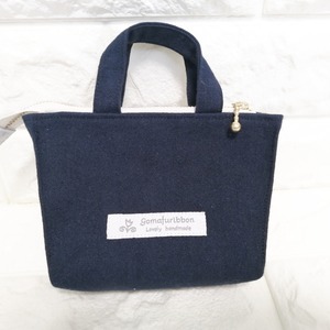 トートバッグ型の小物入れ リバティ フリル 紺x水色