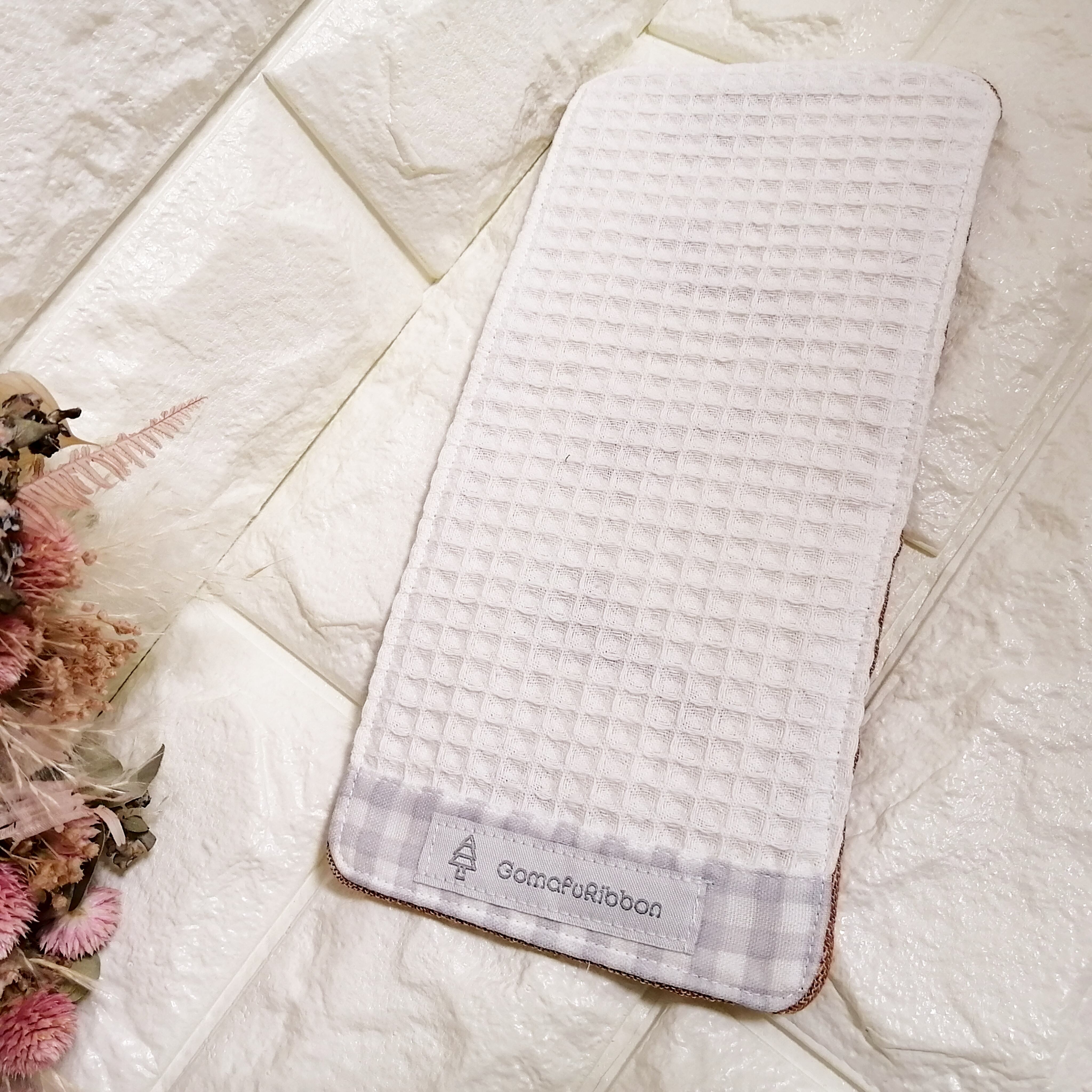 ガーゼのハンカチ 長方形 2層(6重ガーゼ x ワッフル生地)きりん ブラウン
