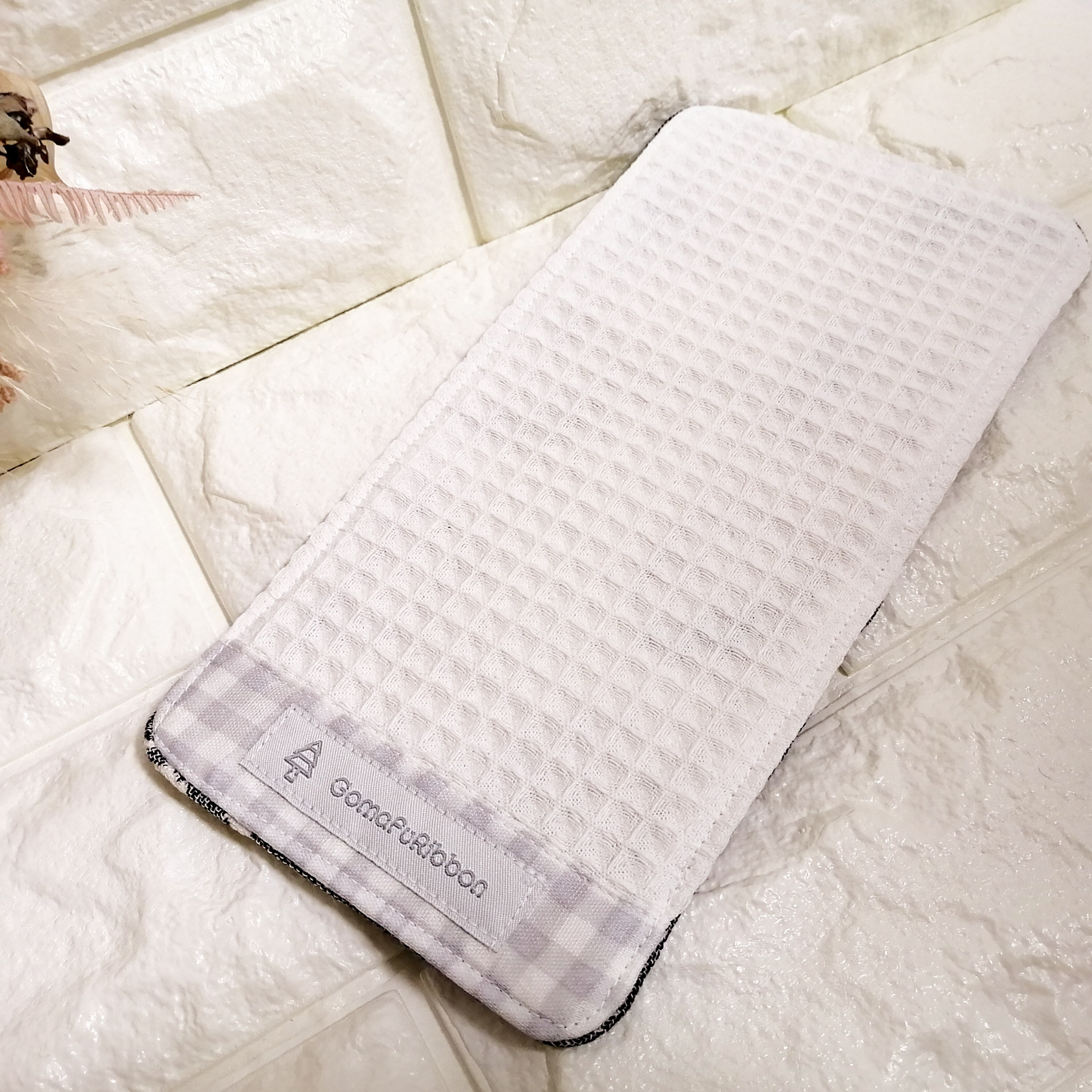 ふわふわの6重ガーゼにニャンコが並んでいでいます。片側はワッフル生地です。ワッフル生地なのでさらっとしています。