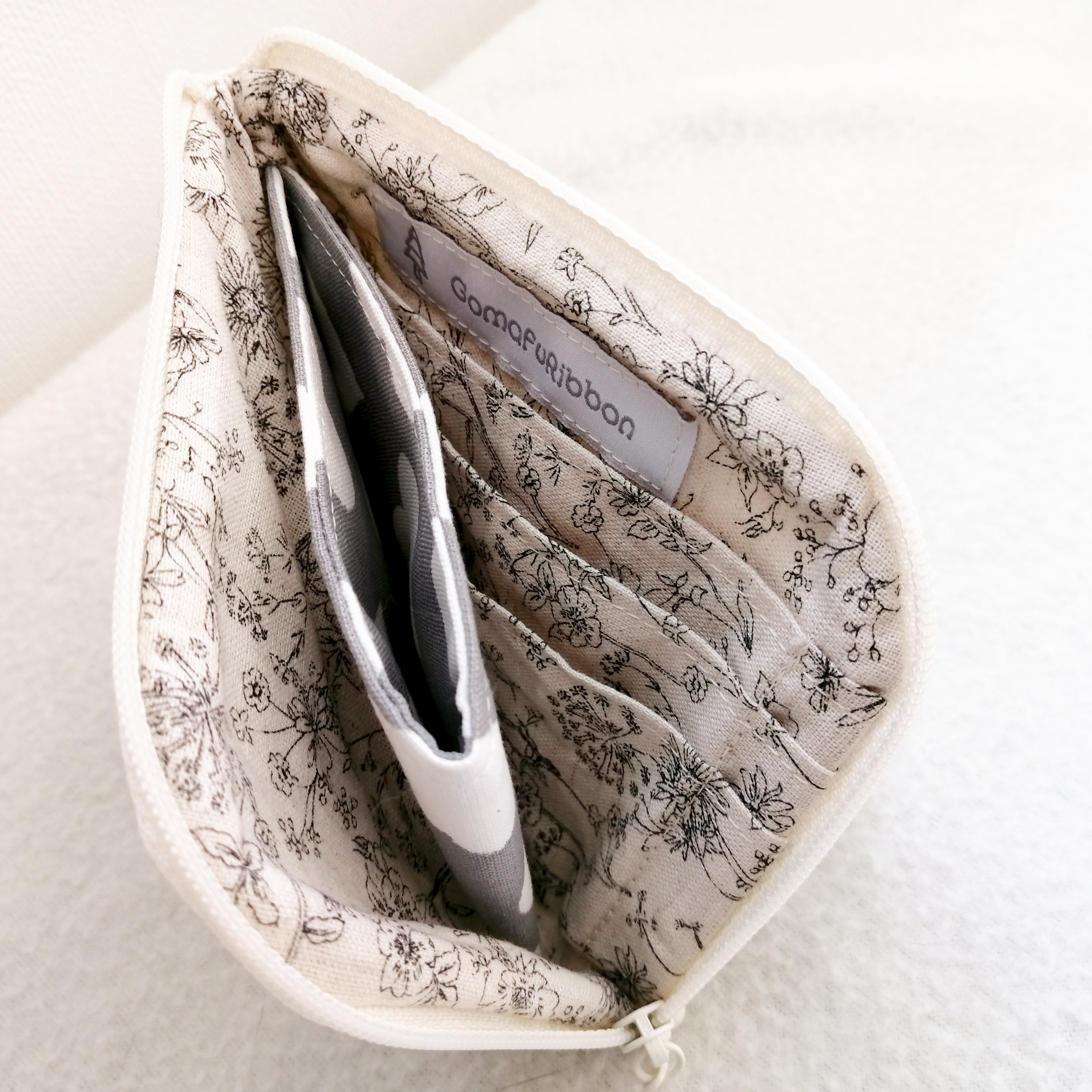 内側には、カード入れと小銭ポケットが付いてます。逆さまにしても小銭が飛び出しにくいので、使いやすいです。