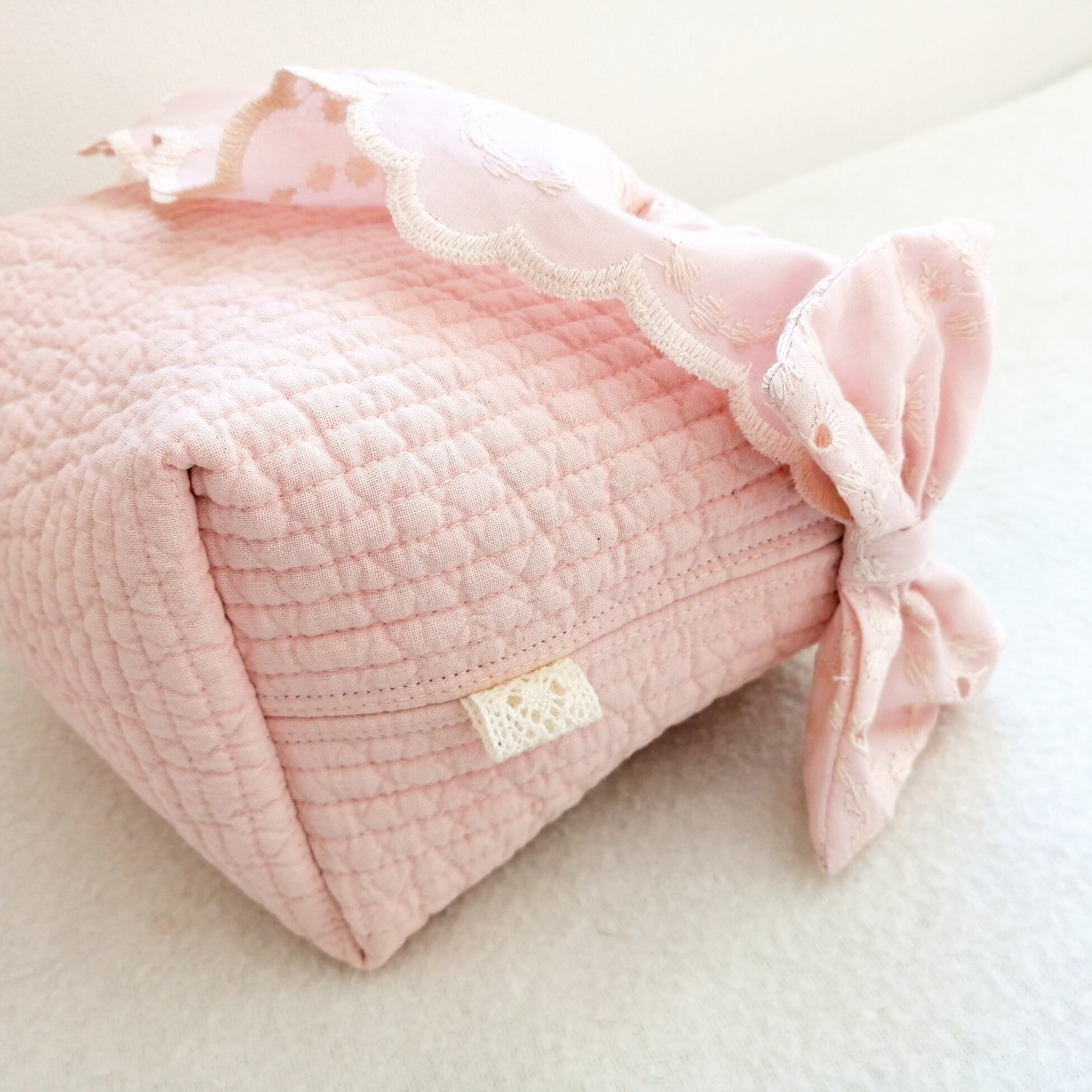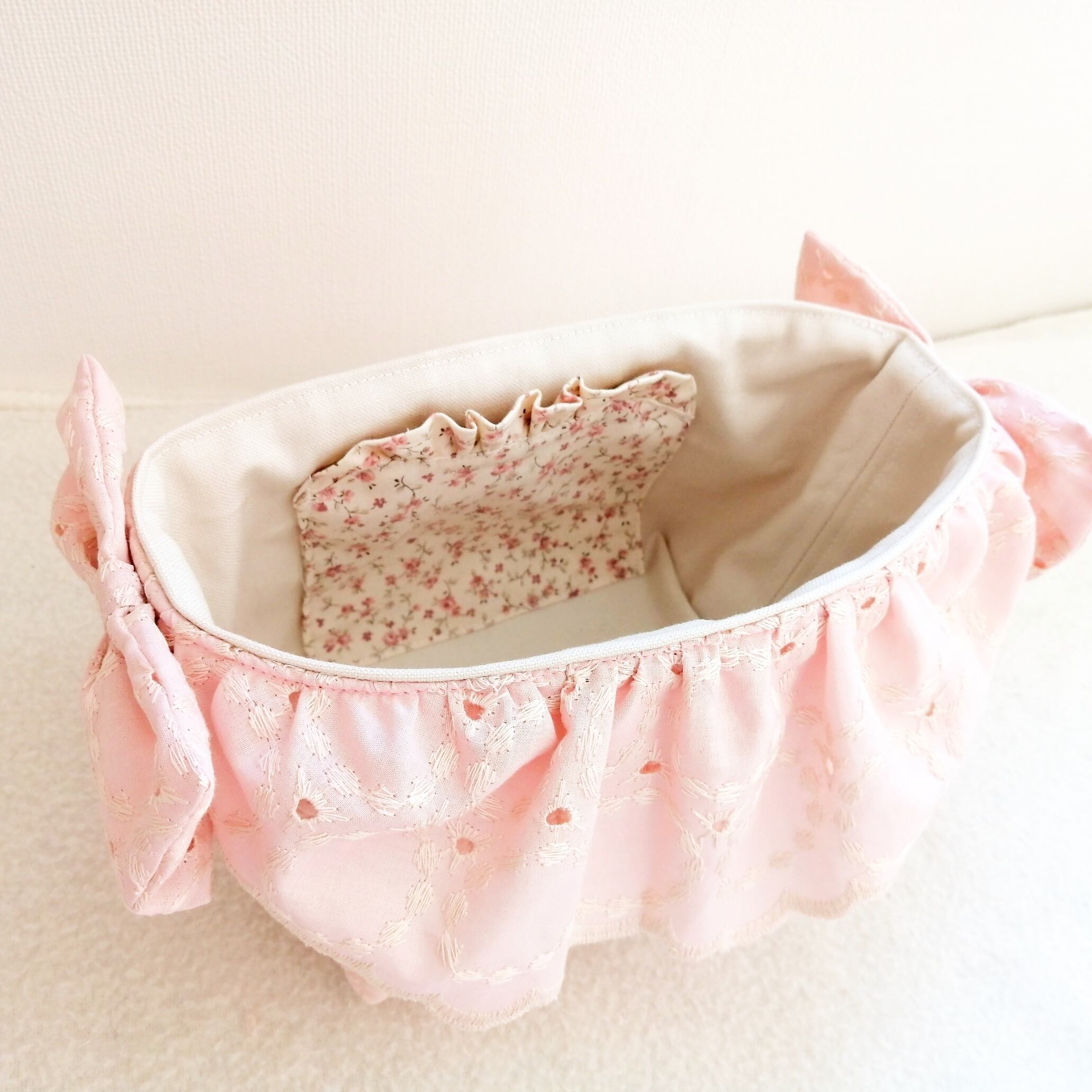 愛らしいレースで癒される布バスケットが生まれました。