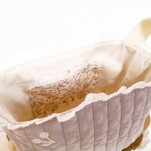 両サイドの持ち手に施したトーションレースで、大人可愛さと高級感をぐっとアップ。