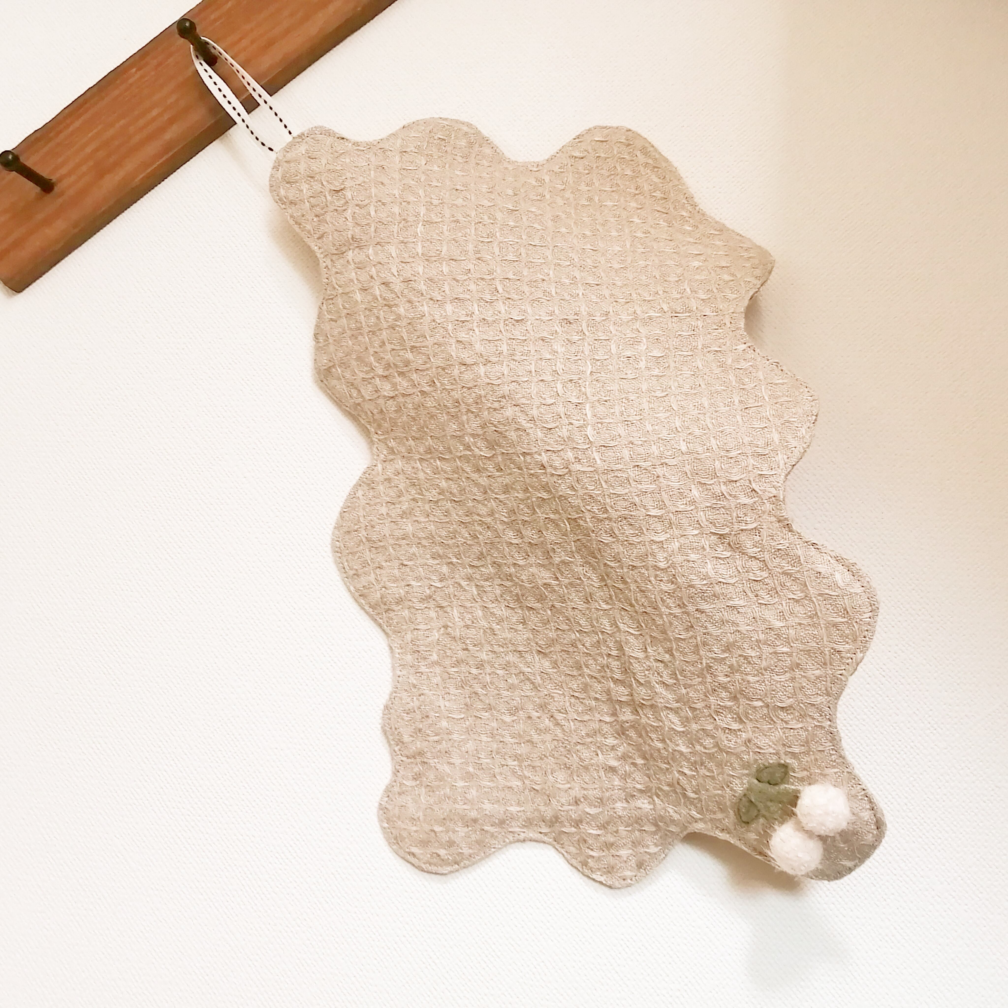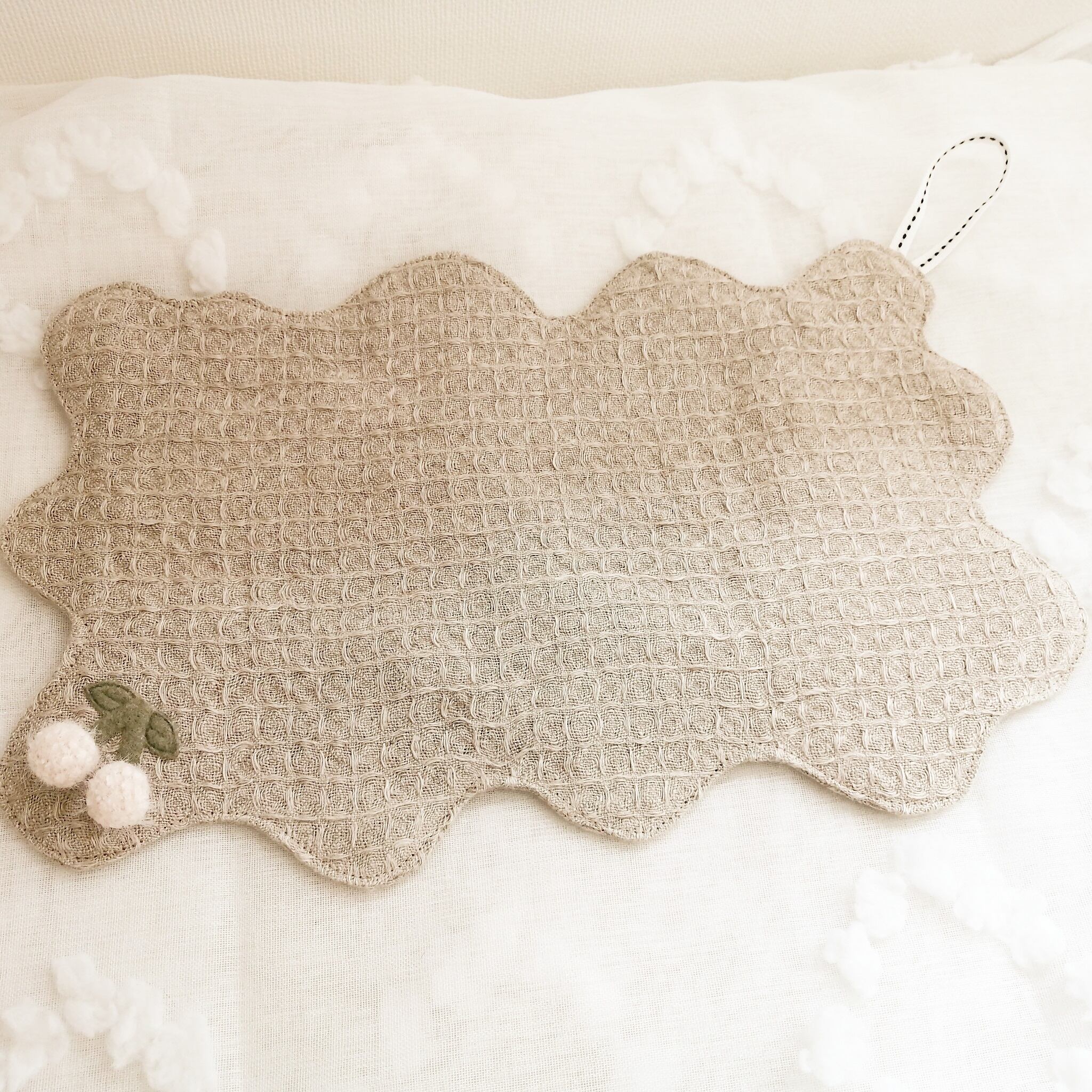 リネンワッフルのもくもくランチョンマット ベージュ さくらんぼ ティータイムサイズ