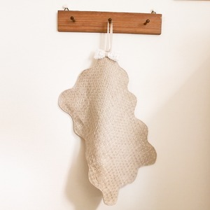 リネンワッフルのもくもくランチョンマット ベージュ メッシュレースのリボン ティータイムサイズ