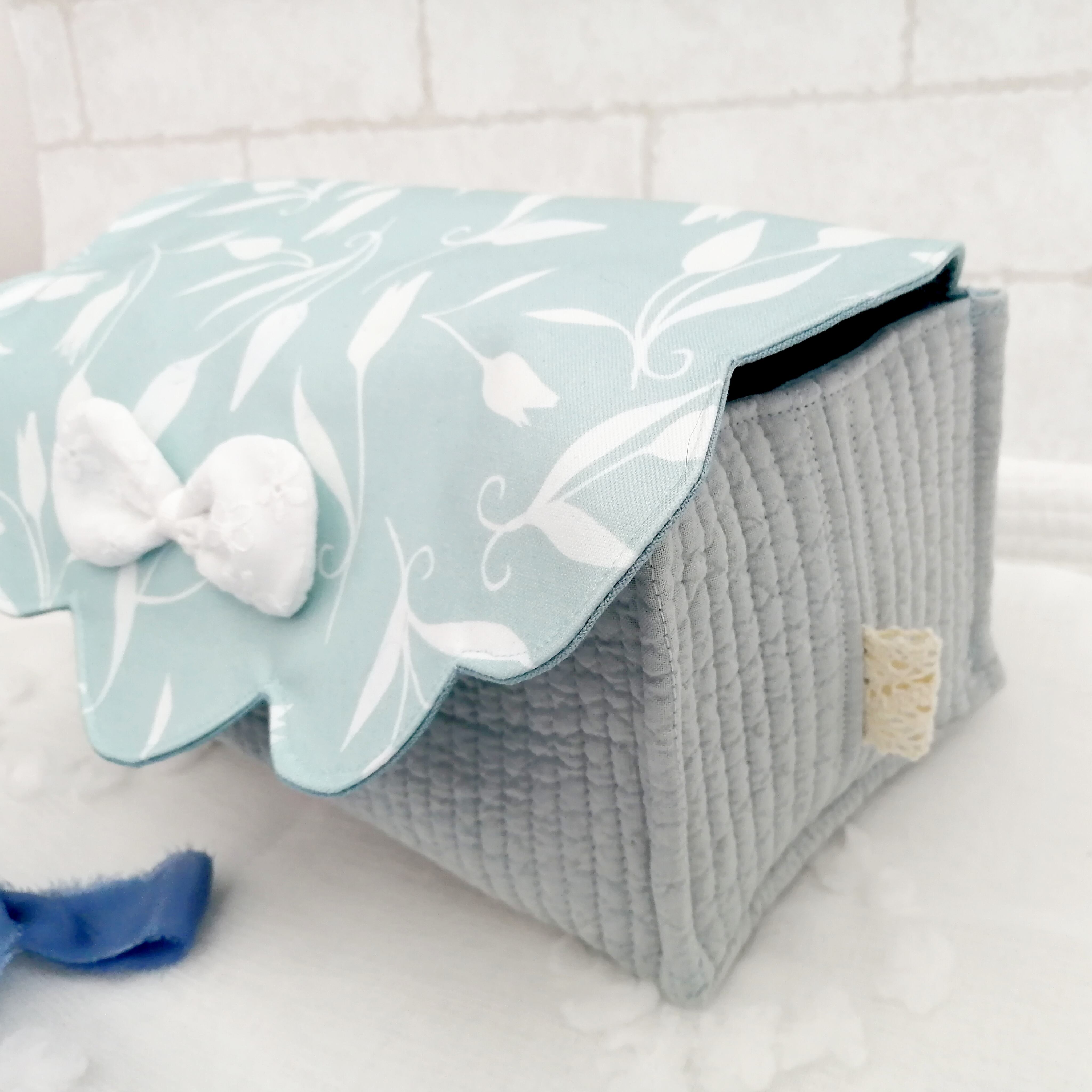 スカラップリボンの布バスケット ヌビ すずらん 白い花レースのふわふわリボン