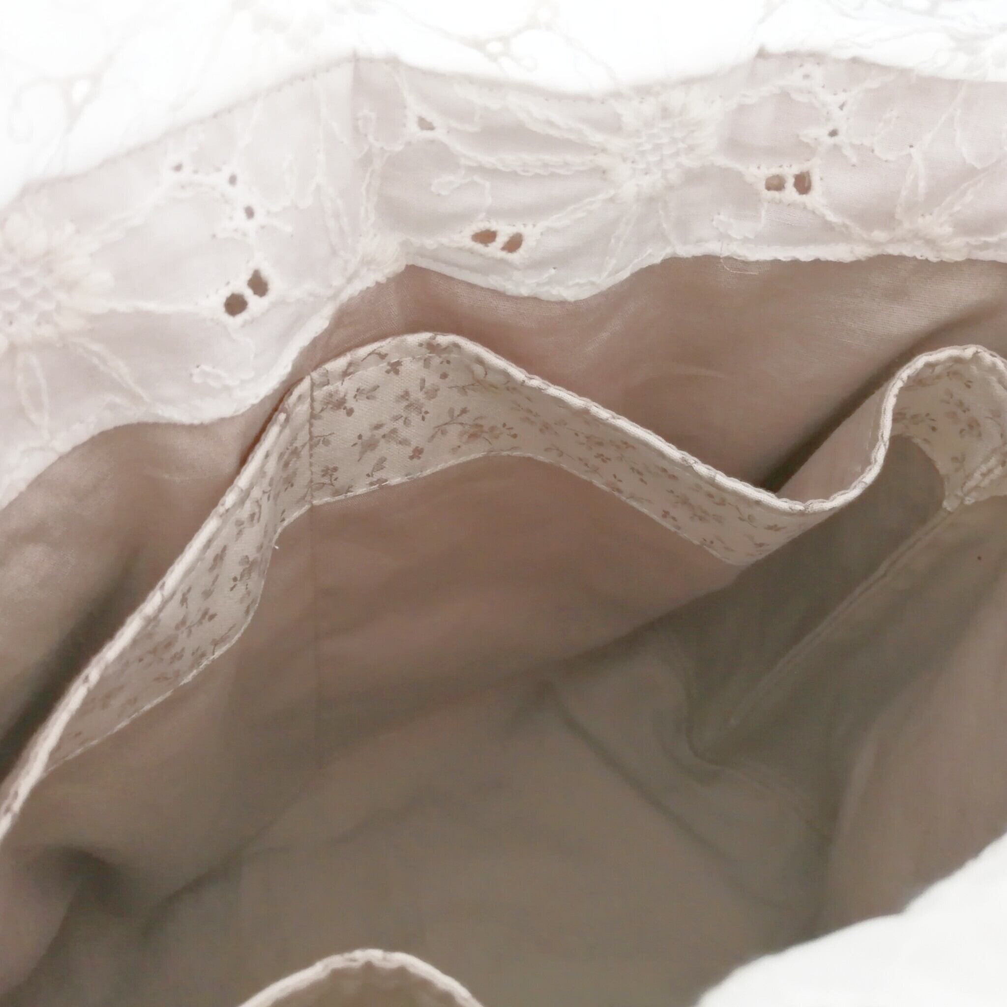 巾着の部分にはマーガレットの刺繍のレース生地を使用